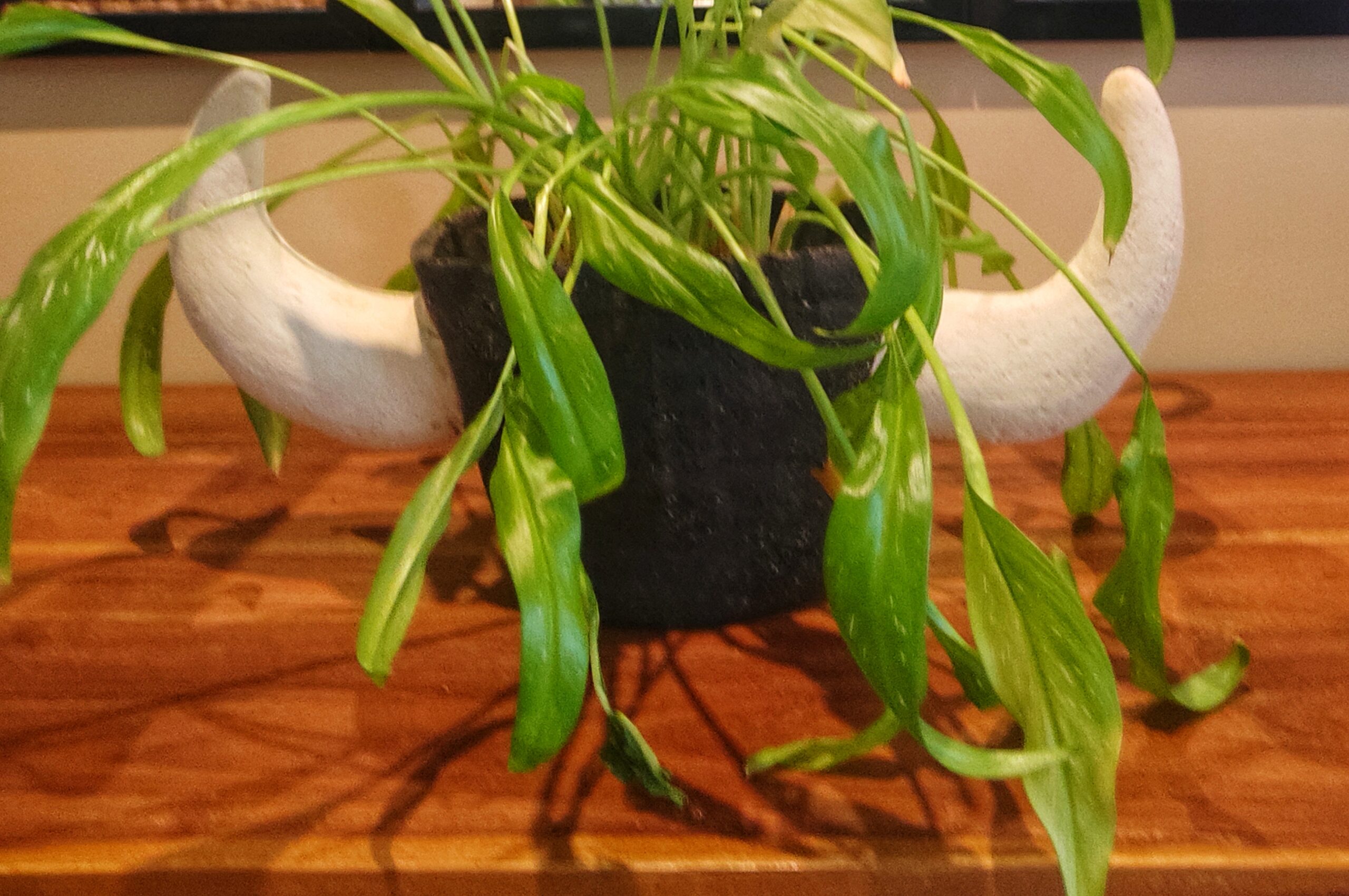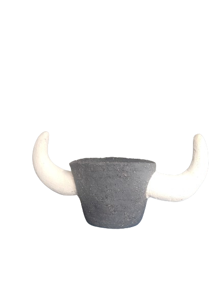 Le gré chamotté noir confère une texture unique et une profondeur visuelle captivante, tandis que les cornes de toro ajoutent une touche d’exotisme et de mystère.